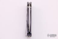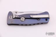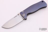 The SR-2 framelock folder by Lion Steel features a satin finish blade with notched thumbrest and dual thumbstuds. Anodized and carved titanium single piece construction frame. Very sharp blade. Features rotoblock system which allows the blade to be locked open. Nice detent, blade seating and lockup. Excellent condition.