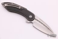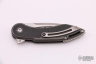 This Mini Glimpse by SteelCraft and Todd Begg features a satin finished spear point blade with fullers and a flipper. The handle has a tumbled titanium frame with carbon fiber inlays, titanium backspacer and tip up clip. Rides on IKBS bearings, nice detent, lockup and blade seating. Excellent condition.