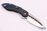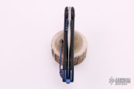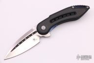 This Mini Glimpse by SteelCraft and Todd Begg features a satin finished spear point blade with fullers and a flipper. The handle has a black G-10 frame with carbon fiber inlays, anodized titanium backspacer and tip up clip. Rides on IKBS bearings, nice detent, lockup and blade seating. Excellent condition.