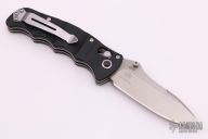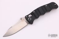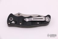 This 484 Nakamura AXIS features a drop point blade with swedge, dual thumb studs and notched thumb rest. The handle is comprised of machined black G10 scales over steel liners and barrel spacers. The steel tip up clip is reversible for right or left hand carry. Excellent condition.