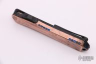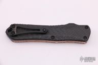This Manticore-E by Heretic Knives features a two-tone DLC recurve blade. The handle has a carbon fiber and chemtina copper frame with DLC stainless steel hardware and tip down clip. Comes with original box and papers. S/N 069. Excellent condition.
