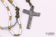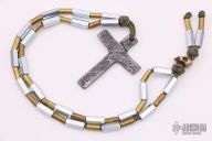 This Fighting Rozary by GHK features a hand froged tool steel cross with brass and steel beads. 30" necklace. New from maker.