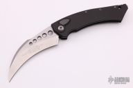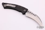 This Hawk Auto by Microtech Knives features a stonewashed hawkbill blade. The handle has a black aluminum frame with blasted stainless steel hardware and tip up clip. Dated 06/2019 and s/n 009 Prototype. Comes with original box. Excellent condition.