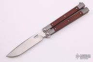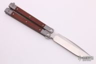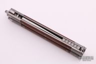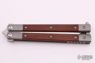 This model of the Pena Signature Series Mid-Tech Penasong comes with a blasted titanium handle with natural canvas micarta inlays and a satin finished drop point blade made from CPM-154. The Mid-Tech Penasong from Enrique Pena is a more accessible version of his custom Penasong, but doesn't sacrifice any of the quality. Each knife is assembled and hand ground by Enrique. The body screws, latch, and spacers are made out of titanium, while the pivot pins are made from stainless steel. Ceramic ball-bearings allow the knife to flip with ease and run on stainless washers to prevent wear on the titanium frame. Upgrade your balisong game and pick up one of these fine Mid-Tech Penasong knives. Comes with zippered case. Excellent condition.