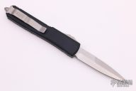 This Ultratech by Microtech is the 2019 Blade Show Special. It features a bayonet ground double-edged stonewashed blade. The handle has a black aluminum frame with blasted stainless hardware and tip up clip. Comes with original box and papers. New from maker at the 2019 Blade Show.