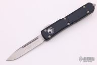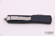 This Ultratech OTF automatic features a stonewash finished drop point blade with fullers and single blade edge. Handle is contoured black aluminum, marked 02/2020 with serial number 160945. Stainless steel hardware, and clip. Comes with original box and papers. Excellent condition.