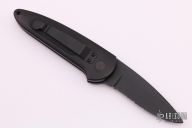 This Top Lock by Boker features black coated aluminum handle with black Kraton insets, and a black coated blade of Solingen stainless steel. Tip down black stainless steel clip. Comes with original box and nylon sheath. Excellent condition.