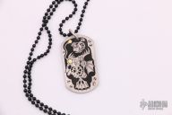 Steampunk Anglerfish Dogtag - Laser engraved Boker brand Grade 1 Titanium Dogtag Clockwork Steampunk Anglerfish. Deeply laser engraved to Tom's exacting specifications using his original design. Hand inlaid with 24 karat gold eye and lightbulb. Dark steel beaded chain included. New from maker. Comes with COA.