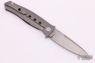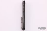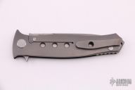 This "Russian Dr. Death" flipper with carbon fiber presentation side scale is a collaboration between Shirogorov and Tom Mayo. This one is #166 of 200 that was made. The blade features a very fine bead blasted/tumbled finish and notched thumbrest and flipper. The handle has a titanium lock side, classic hole pattern, titanium backspacer with lanyard hole and jimping, tip up titanium clip with hole through clip and all the way through the frame, stainless lockbar insert. Has the Mayo and Shirogorov logos near the butt. Nice detent, lockup and blade seating. Knife is in excellent condition. This knife is chalked full of details and is an amazing representation of Tom Mayo's Dr. Death. Comes with original box.