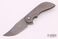 This Micro Intro by Jeff VanderMeulen features a tumble finished blade with notched thumb rest on spine of blade, .191" blade stock. Tumble finished titanium frame and titanium barrel spacer, has a MokuTi tip up clip. Has nice blade seating, lockup and detent. Dated 7/2017 inside frame. Excellent condition. #42