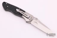 This 670 Apparition by Benchmade features a tumbled drop point blade with swedge, dual thumb studs and notched thumb rest. The handle is comprised of steel bolsters and milled polymer handle scales over steel liners and file worked steel backspacer. The brushed steel pocket clip is positioned for right hand, tip down carry. Excellent condition. Comes with original box and papers.