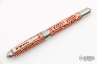 This Custom Screwtop Pen by Grayson Tighe has a CrazyFiber Micarta body overlay. Titanium body and hardware that has been satin finished. Comes with beautiful presentation box. New from maker. Takes a Schmidt refill.