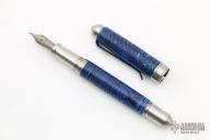 This Custom Screwtop Fountain Pen by Grayson Tighe has a CrazyFiber Micarta body overlay. Titanium body, cap, grip and clip, blind cap and crown. Titanium nib. Cartridge/converter fill. Comes with original box. New from maker.