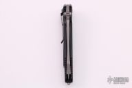 This Socom Elite from Microtech has an Apocalyptic finished tanto blade with dual thumbstuds and notched thumbrest. The handle has a black aluminum frame with non-slip rubber inserts and a tip down stainless steel clip. Dated 06/2020 and S/N 7651. Includes original box and paperwork. excellent condition.