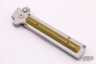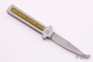 This Companion Model 1 from Rob Dalton features a bead blasted bayonet ground dagger style blade with false top edge. The handle is comprised milled aluminum frame with gold aluminum overlay. Excellent condition.