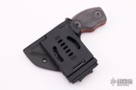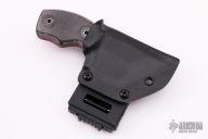 This Chubb Tanto by Nicholl Knives features an acid stonewash finished tanto blade with notched thumbrest, .188" blade stock and 1.744" blade depth, full tang construction. The handle has black canvas micarta scales with red liners. Comes with a kydex sheath with belt clip. Comes with COA dated July 2020 and original bag. Excellent condition.