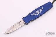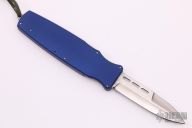 This Asp FTW OTF auto opens by pressing down on the bar on the handle spine. The knife closes by pressing the locking mechanism on the opposite side and pulling the charging handle on the rear. Very strong and fast opening. Both edges of the blade are sharpened. Excellent condition.