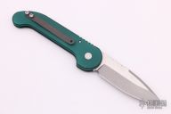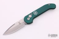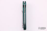 This Slim Seal Auto Limited Edition #028 from Rob Dalton has a bead blasted spear point blade with satin finished grinds, a false top edge and file worked blade spine. Handle is green aluminum with milled shamrock and tip up titanium clip. Very minor scuffs are visible on the handle and blade otherwise the knife is in excellent condition.