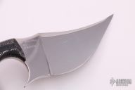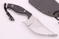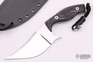 This Persian fixed blade by L. Marshall features a mirror polished blade with false top edge, .148" blade stock and 1.742" blade depth, full tang construction. The blade was heat treated by L. Marshall's mentor, Mr. Bruce Gillespie. The knife features LSGuycarta handle scales, copper spacers, stainless mosaic pins, and comes in a kydex sheath. Knife is in excellent condition but does have some light scratches. Blade is stamped #62.