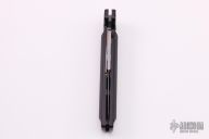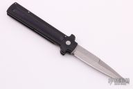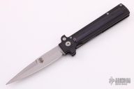 This Companion Model 1 from Rob Dalton features a bead blasted bayonet ground dagger style blade with false top edge. The handle is comprised milled black aluminum frame with black aluminum overlay. Excellent condition. Nice lockup, action and blade seating.
