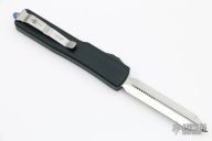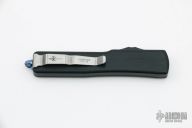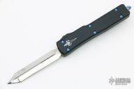 This UTX-70 Spartan features a hand-ground mirror finished blade with a star grind. The handle is hand sculpted black aluminum with anodized titanium hardware, and a stainless steel pocket clip. The clip is marked "A. Marfione" dated 01/2019 and dagger logo is on the clip. Comes with original box and COA. Excellent condition.