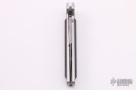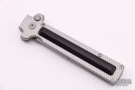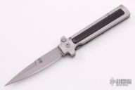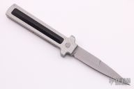 This Companion Model 1 from Rob Dalton features a bead blasted bayonet ground dagger style blade with false top edge. The handle is comprised milled silver aluminum frame with black aluminum overlay. Excellent condition. Nice lockup, action and blade seating.