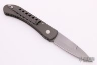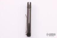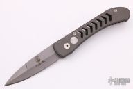 This side-opening automatic features a bead blast blade and an aluminum frame. Bead blast titanium clip. Push button coil spring opening with strong action. Excellent Condition.