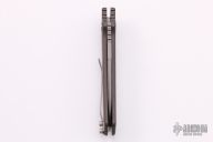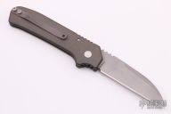 This Wharncliffe coil spring automatic features a bead blast blade with notched thumbrest and gray aluminum handle with engraving, bead blasted titanium tip up clip. Numbered 078 on frame. Excellent Condition.