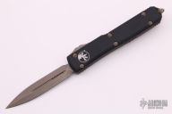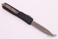 This Ultratech by Microtech features a stonewash bronzed double-edged blade with fullers. The handle has a contoured black aluminum frame with bronzed stainless steel hardware. Comes with original box and papers. Excellent condition. Dated 04/2017 and s/n 79225.