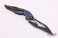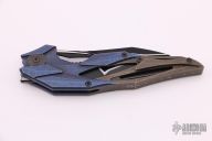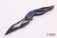 This 719A Eschaton by WE Knife Company features a black blade with satin flats, and a flipper. The handle has a 3-piece titanium frame that has been tumbled and anodized, black stainless steel liner, tip up anodized titanium clip. Comes with original box and COA, 319of500. Excellent condition.