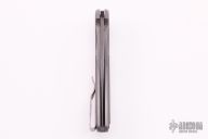 This Cambria flipper by Pro-tech features a Chad Nichols stainless Damascus blade with flipper. The handle has a two-tone stainless steel frame with black lip pearl inlay in the frame and push button, tip up stainless steel clip. Rides on bearings, nice detent, lockup and blade seating. Has some light scratches, otherwise excellent condition.
