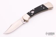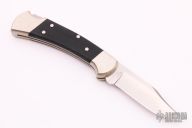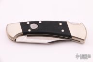 This Buck 112 Auto features a satin finished clip point blade. The handle has a nickel silver frame with black G-10 scales. Excellent condition.