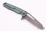 This Mako V2 framelock flipper from Gavko Knives features a tumble finished blade with a flipper. The handle has anodized, milled and tumbled titanium scales that have a titanium clip positioned for tip up carry. Nice detent, lockup and blade seating. Comes in a zippered pouch. Excellent condition.