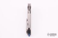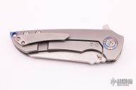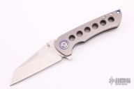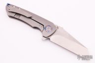 This Critical from Kizer was designed by Matthew Christensen. It features a tumble finished blade with notched thumbrest and flipper. The handle is comprised of bead blasted titanium over an anodized titanium backspacer, has anodized titanium pivot collars, and bead blasted tip up clip. Includes original zippered case. Excellent condition.