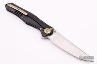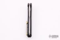 The 3.94" drop point blade is made from M390 stainless steel with a hand rubbed satin finish, a small finger choil, and jimping in exactly the right spots. The properly designed flipper tab rockets the blade out and doubles as a finger guard while open. The integral handle is made from 6Al4V titanium with a black finish and gold custom hardware. The pocket clip, backspacer, screws, pivot cap, and washers are all 6Al4V titanium for maximum quality assurance and you have a replaceable lockbar insert for longevity. We absolutely love this knife and are sure you will too, it's without a doubt one of the premier knives to come from China this year.