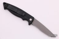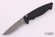 This Mini Reflex by Benchmade features a bead blasted partially serrated blade and a black aluminum handle with black stainless steel tip up clip, lanyard hole at the butt and safety on the spine. Comes with original box and papers. Excellent condition.