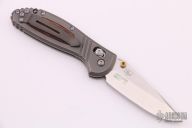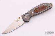 The Griptilian is born of custom knifemaker Mel Pardue's passion for functional designs. You release the creature's ferocity with a thumb stud. At the very heart of the Griptilian is the exclusive AXIS locking mechanism. This modern marvel gives life to a cutting tool like you have never experienced before, especially in a lightweight folder. Rock-solid ambidextrous function is sure to tame the most die-hard of traditionalists. With the 556-1701, Benchmade welcomes in a beautifully upgraded Mini Griptilian combining precision machined titanium alongside wood and brass details. This limited edition is individually numbered and features CPM-20CV stainless steel. CPM-20CV is virtually identical in chemical composition to Benchmade's current M390 steel but is made in the USA by Niagara as opposed to Bohler, which is based Austria. It offers better edge retention but is not quite as tough to sharpen as M390.