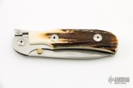 This One Hand Knife features stag scales and a satin finished blade. Excellent condition.