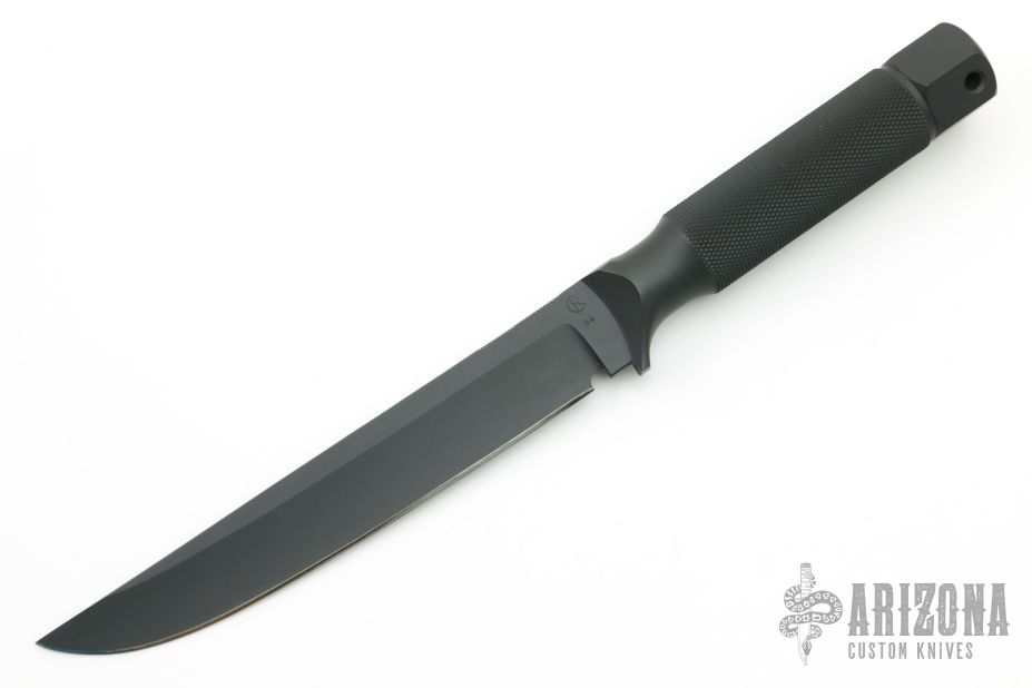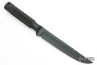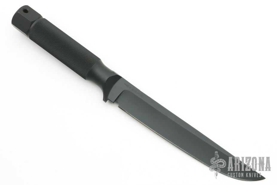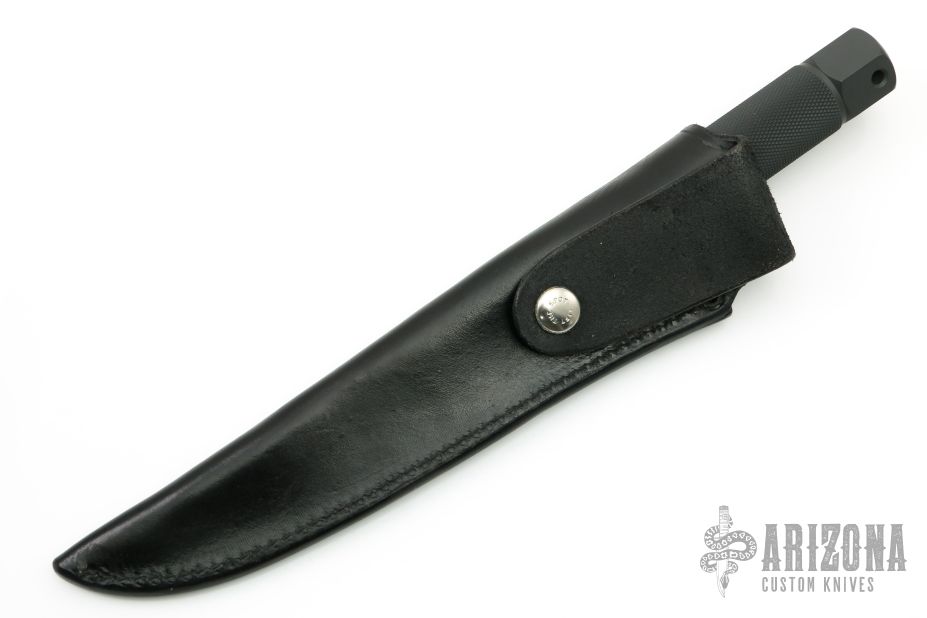 "Perhaps the most overlooked knife in the range and maybe it is the least spectacular looking blade shape but the Sable is, in fact, one of the most practical and versatile of all the blade shapes. The full thickness of material on the back edge makes it a strong knife and the high grind and sweep of the blade offer a perfect utility knife which can double for most skinning tasks." The blade has .249" blade stock and 1.192" blade depth, integral construction. Includes original black leather sheath, replacement box and a reissued COA dated July 1987 with a reissue date of 11-9-2016. Made in South Africa and is #10. Excellent condition.