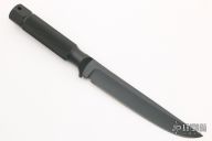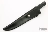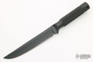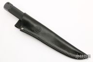 "Perhaps the most overlooked knife in the range and maybe it is the least spectacular looking blade shape but the Sable is, in fact, one of the most practical and versatile of all the blade shapes. The full thickness of material on the back edge makes it a strong knife and the high grind and sweep of the blade offer a perfect utility knife which can double for most skinning tasks." The blade has .219" blade stock and 1.088" blade depth, integral construction. Includes original black leather sheath, replacement box and original COA dated November 21st, 1988. Made in South Africa and is #54. Excellent condition.
