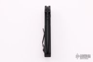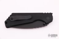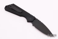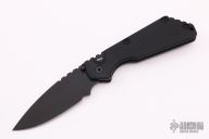 This Pro-Strider SNG by Pro-Tech and Strider Knives features a black blade with notched thumbrest. The handle has a black aluminum frame with black hardware and black stainless steel tip up clip.  There is a tritium lantern inlaid into the push button.  Comes with original box and papers. New from maker.