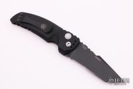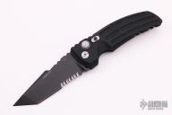 This EX-A01 by Hogue Knives is an Allen Elishewitz design, it features a black tanto partially serrated 154CM blade with notched thumbrest. The handle is black aluminum, tip up or down reversible black stainless steel clip. Has safety. Comes with Hogue box and papers. Excellent condition.