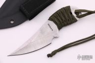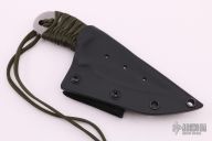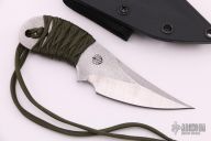 This knife by Mick Strider features a two-tone blade with false top edge, .210" blade stock and 1.249" blade depth, full tang construction with paracord wrap. Comes with kydex sheath. New from maker at the 2020 CCKS.