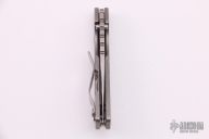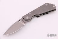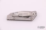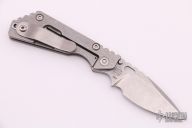 This PT by Mick Strider features a stonewashed blade with notched thumbrest and thumbhole. The handle has a stonewashed titanium frame with matching tip up clip. New from maker at the 2020 LVCKS.