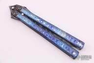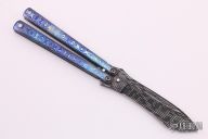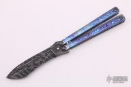 This Balisong by Doc Shiffer features a Damascus blade with MokuTi handles and magnets in the butt to hold the knife open and closed. Comes with a zippered case. Has a few light scratches, otherwise excellent condition.