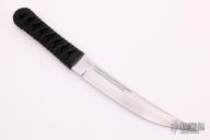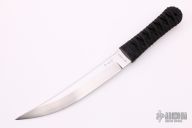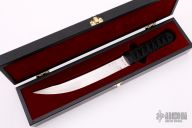 The Shinbu from CRKT features an upswept two-tone blade with polished flats and satin grinds. The handle is comprised of a decorative spacers and Japanese style wrap over black ray skin and hidden tang construction. Includes kydex sheath with belt loop and wood presentation box. Has some light scratches, otherwise excellent condition. Blade Steel: YK-30