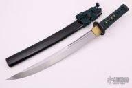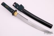 - Handle: 6.125" Samé (Ray Skin) Handle w/ Black Silk Braid Cord w/ Brass Menuki