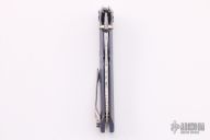 This Tighe Tac Two by Brian Tighe features a Damasteel blade with dual thumbstuds and flipper. The handle has a milled ZircuTi frame with a milled titanium tip up clip. Nice detent, lockup and blade seating. Comes with zippered case. Excellent condition.