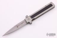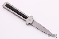 This Companion Model 1 from Rob Dalton features a bead blasted bayonet ground dagger style blade with false top edge. The handle is comprised milled silver aluminum frame with black aluminum overlay, titanium liner. Excellent condition. Nice lockup, action and blade seating.