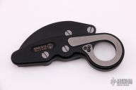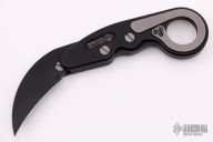 This Morphing Karambit MKV2 Rev.5 by Joe Caswell features a black chisel ground hawkbill blade. The handle is black titanium with tumbled titanium hardware and tip down spring clip. Comes with original box and papers. Excellent condition.